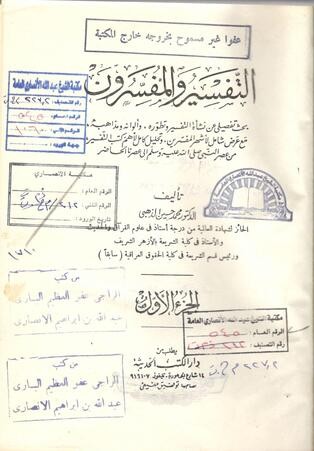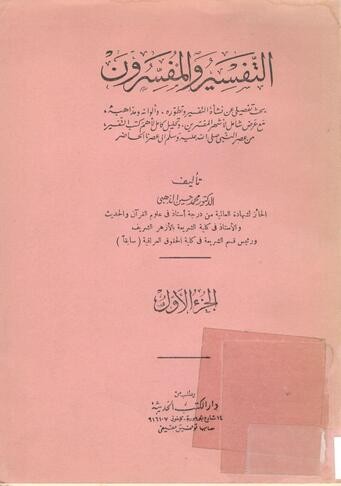 التفسير والمفسرون : بحث تفصيلي عن نشأة التفسير وتطوره. الوانه ومذاهبه مع عرض شامل لاشهر المفسرين وتحليل لاهم كتب التفسير من عصر النبي (صلى الله عليه وسلم)