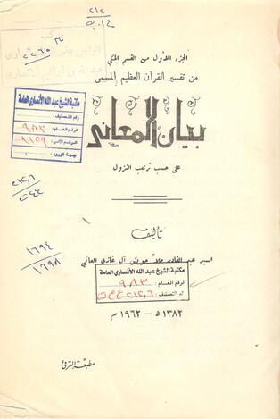 بيان المعاني على حسب ترتيب النزول من تفسير القرآن العظيم