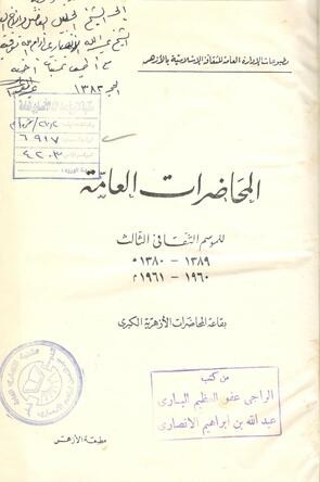 المحاضرات العامة للموسم الثقافي الثالث 1389-1380هـ/1960-1961م