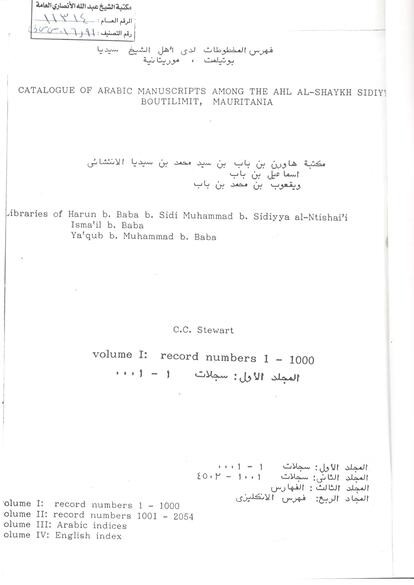 فهرس المخطوطات لدى اهل الشيخ سيديا بوتيلمت